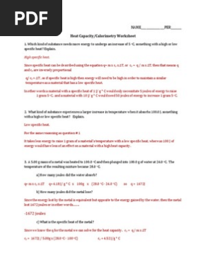 Chemistry Worksheet Heat And Calorimetry Problems Worksheet List from img.yumpu.com Free interactive exercises to practice online or download as pdf to print. The answer to all these questions is calorimetry. The results from calorimetry are. In this calorimetry worksheet, students complete 30 problems. We have a word search maker, an abc order worksheet creator, math generators, and more. They calculate the change in heat of a system given the mass and the change in temperature of the system. If a system is contained in thermal isolation (in other words, heat cannot enter or leave the system). A calorimeter is a device through which we can make the heat measurements necessary for calorimetry.